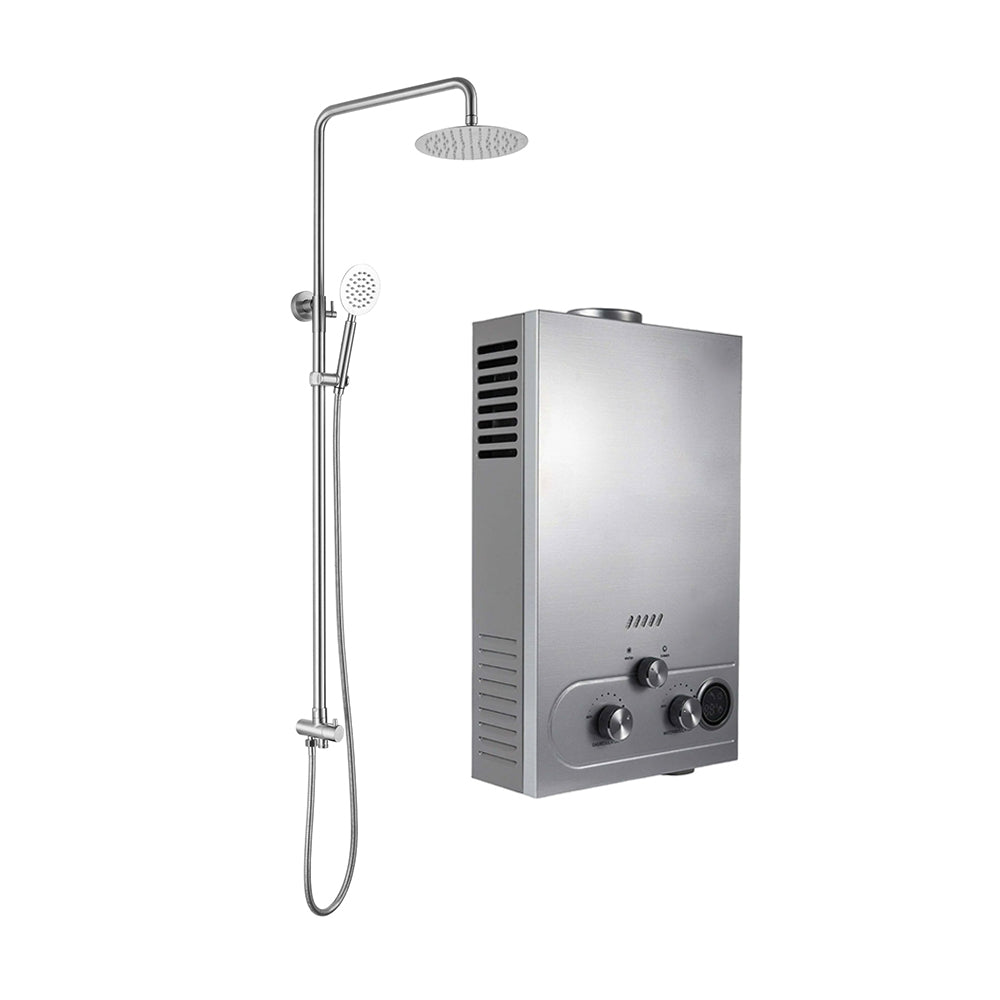 En gasolvärmare värmer upp vattnet i takt med att det strömmar igenom. Det innebär att duschen levererar omedelbart varmt vatten – ingen förvärmning behövs. Trycket i duschhuvudet motsvarar 18 liter varmvatten per minut.